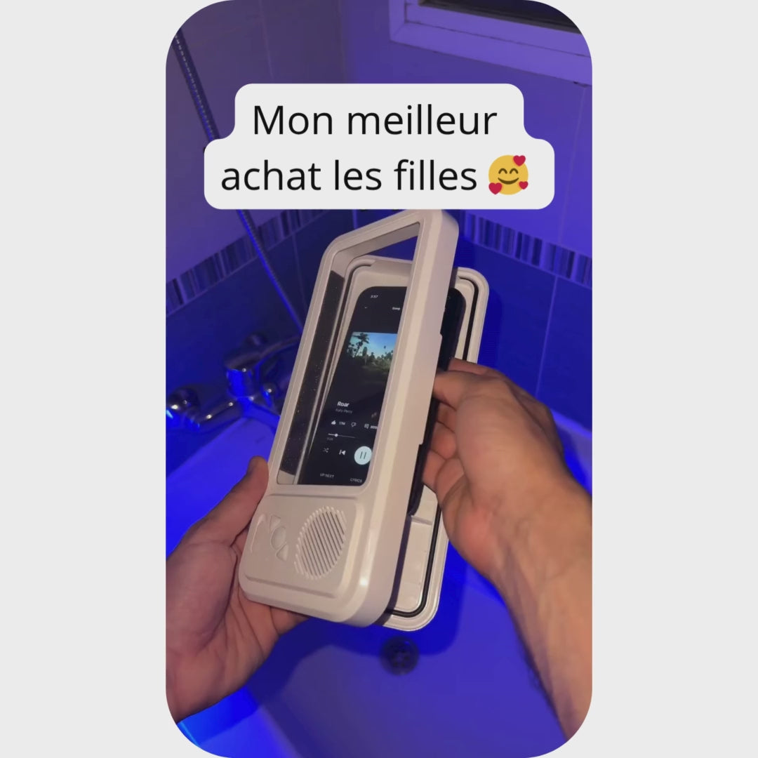 AquaWaveBox™ garde ton smartphone parfaitement protégé, même sous une pluie d’éclaboussures ou la vapeur chaude d’une douche prolongée.